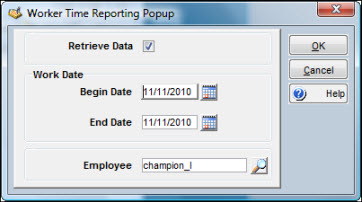 The Worker Time Reporting Popup window facilitates these objectives based on your input.