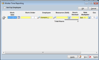 Click the Worker Time Reporting button to open the Worker Time Reporting Popup window. |