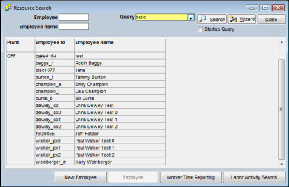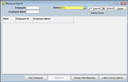 From the Resource Search window, you can search for employee information by using a custom query or entering a full or partial employee ID number.