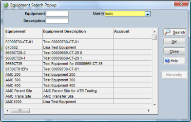 Enter an Equipment ID or use the search icon to open the Equipment Search Popup window and select a work order. |