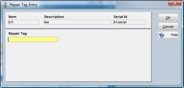 If your location is using repair tags, your system administrator has determined in Setup whether the tag number is created by the system or whether it must be entered manually.