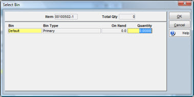 Optionally, click the Select Bin icon to the right of the Qty Issued field to issue the item from a bin other than the primary bin. |