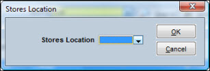 If your location has enabled Multiple Warehousing, you will need to identify the particular stores location in which an inventory transaction is taking place. The Stores Location popup precedes windows that specify general actions to be undertaken.