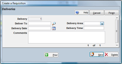Click the New button to add another delivery or click the Finish button to display windows for entering line items.
