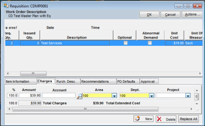 Click the Replace All button if you want the displayed cost distribution to apply to all line items on the requisition. |