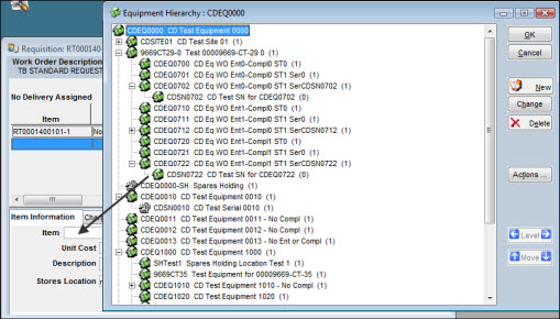 Click the Copy from Hierarchy radio button to copy items from the equipment spare parts list or click the Copy from Item Search radio button to perform a search and then drag and drop items from the search window to the Requisition window. |