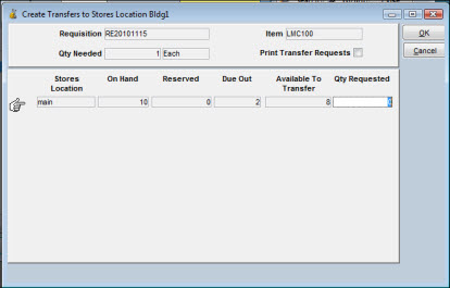 If the requisition was system-generated, TabWare automatically reduces the quantity requested or deletes the reorder, depending on the results of the transfer.