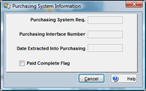 If your site uses the Purchasing Interface, you can view purchasing information from the Requisitions window. With an outside purchase item open, click the Actions button and then select Purchasing System Information.