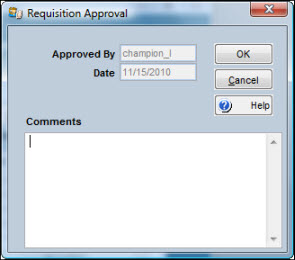 Highlight one or more records and click the Approve button. The Requisition Approval window displays. |