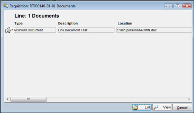 Using the Actions button from the Requisition window, you can link documents to a line item. Along with the links you create, TabWare automatically displays any links that exist for: (1) a mechanical integrity value shown on the PO Defaults window, and (2) a permanent inventory item.