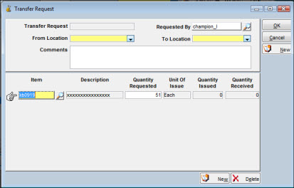Note: You cannot enter a Quantity Requested greater than the quantity shown as Available to Transfer.