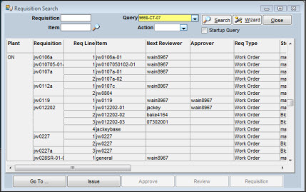 The Go To button gives you access to other functions related to requisition processing. You can view requisition details by highlighting one or more records from a search and then clicking the Requisition button. If you have authority to approve requisitions, you can perform a search, highlight multiple records, and then click the Requisition Approval button. The Issue button lets you issue requisition items where the source of supply is your internal storeroom.
