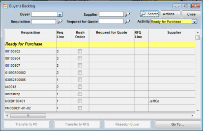 From the Buyer’s Backlog window you have the option of searching for requisition items to transfer to a new or existing Request for Quote.