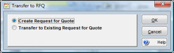 Highlight one or more displayed records and click the Transfer to RFQ button. The Transfer to RFQ window displays. |