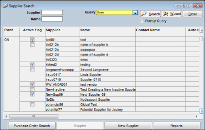 Click the Search button to display a list of records for suppliers matching the selection criteria. |