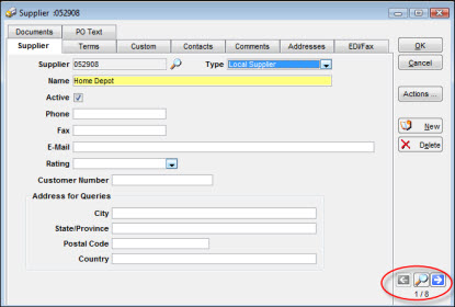 Double-click one of the records displayed to open the Supplier Notebook, or hold down the CTRL key while selecting multiple records and click the Supplier button at the bottom of the window. |