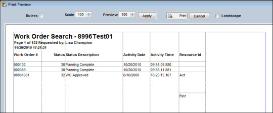 Click the Print button on the Print Preview window to route the information to a printer. |
