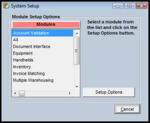 In the System Setup window, highlight the module you want to set up and either double-click it or click the Setup Options button.