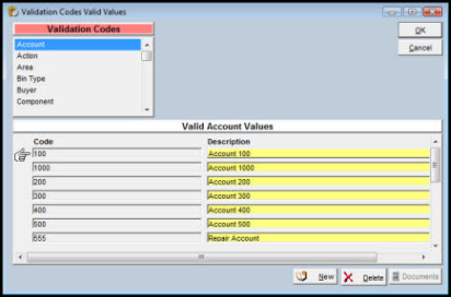 For a given validation code, you can maintain a list of acceptable values that apply to that code using the Validation Codes Valid Values window.