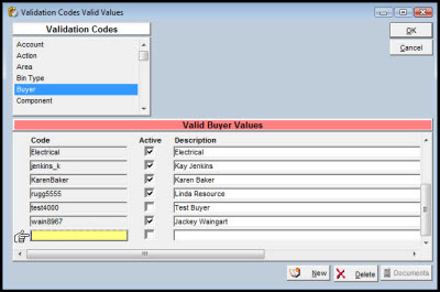 Click New to enter another buyer or click OK to save the information and close the window. |