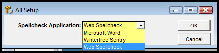 Spellcheck is available on text fields in TabWare. TabWare supports three different spell check applications - Wintertree Sentry, Microsoft Word, and Web Spellcheck.