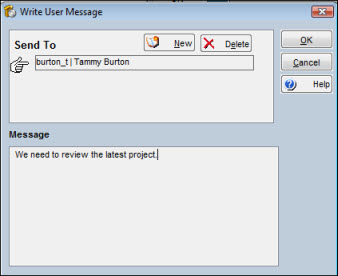 From the Message Log window, you can create and send messages to another TabWare user. For example, you may want to send a message to a coworker asking that person to approve work orders in your absence.